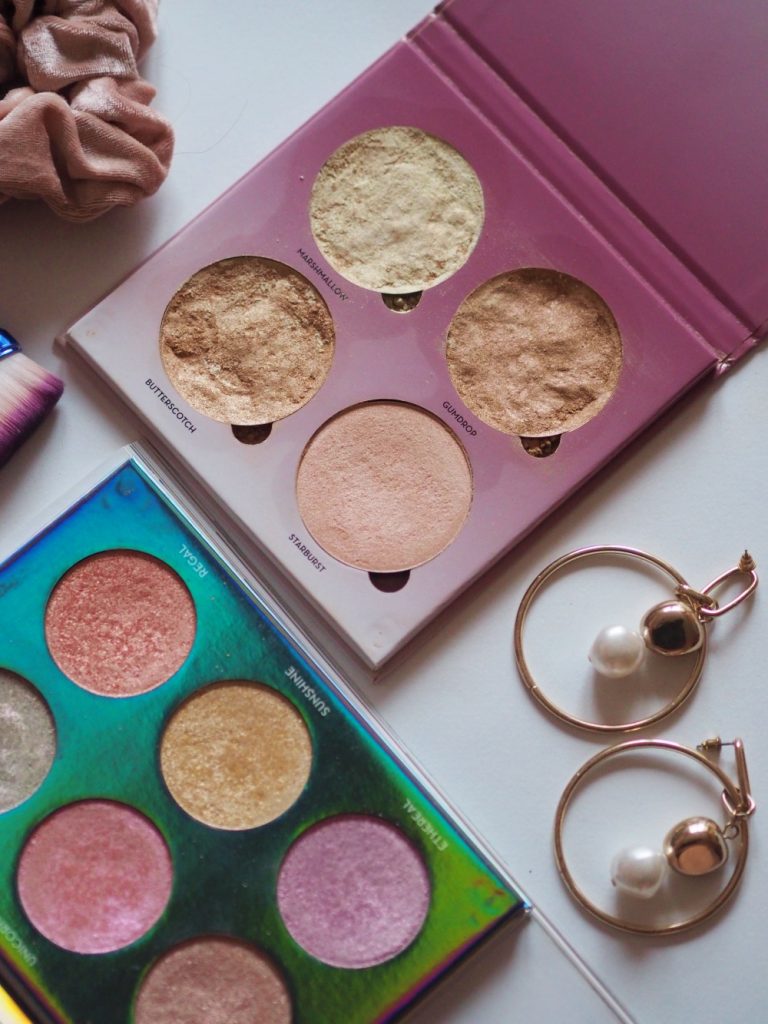 Po pierwsze, znałam już wcześniej formułę rozświetlaczy ABH, bo jak widzicie na zdjęciu powyżej, posiadam Glow Kit Sugar. Mocno sfatygowany, bo rozświetlacze są mięciutkie jak masełko i ucierpiały podczas przesyłki, ku rozpaczy mej – najbardziej najpiękniejszy kolor ever – Gumdrop.