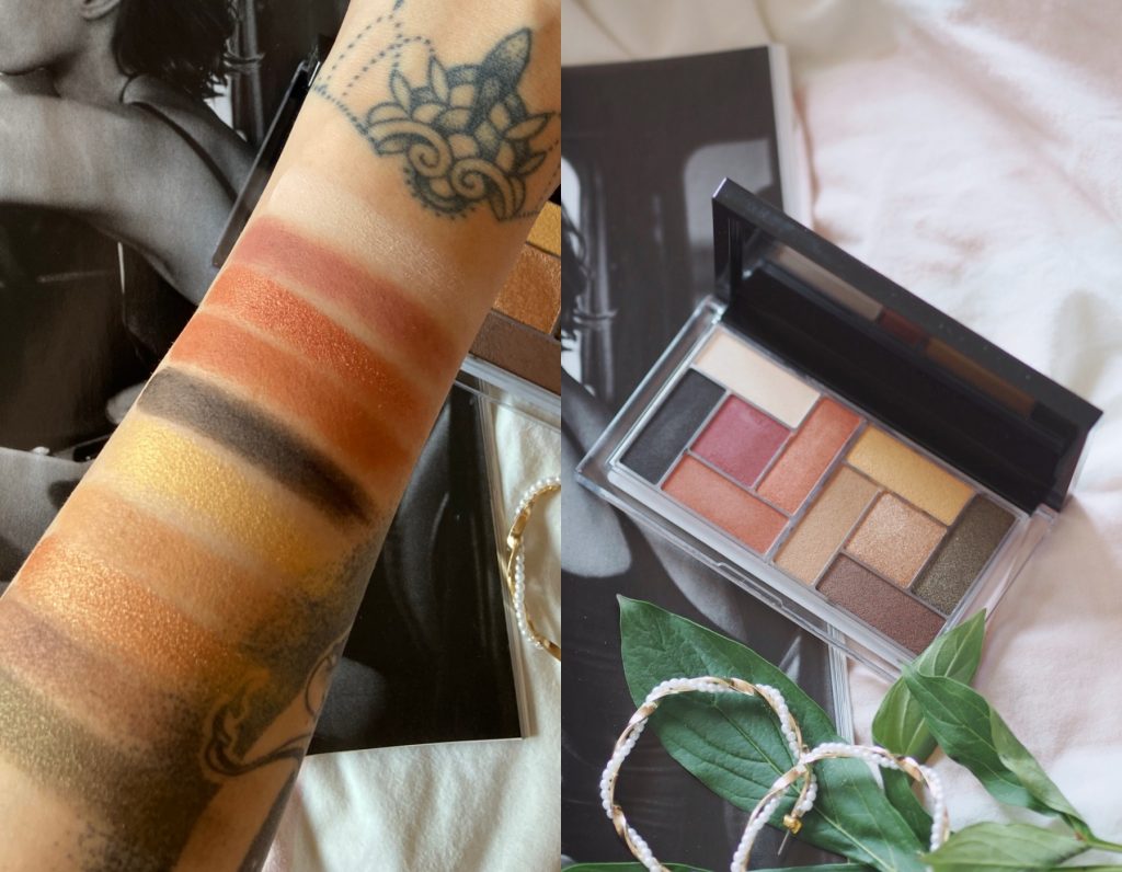 Paletka z 10 cieniami w dwóch wykończeniach – matowym i błyszczącym, o naprawdę ładnych, cieplejszych odcieniach Warm Memories wygląda na naprawdę uniwersalną i przemyślaną. W zestawieniu mamy matowe beż, czerń, brązy oraz rozświetlające odcienie złota, brązów, miedzi. Kolory cieni może nie są szczególnie zaskakujące, ale selekcja barw daje możliwość stworzenia pełnego makijażu – dziennego i wieczorowego.