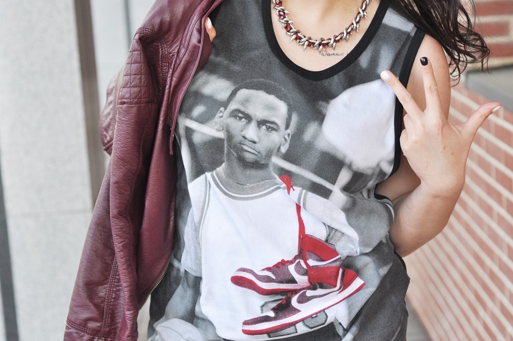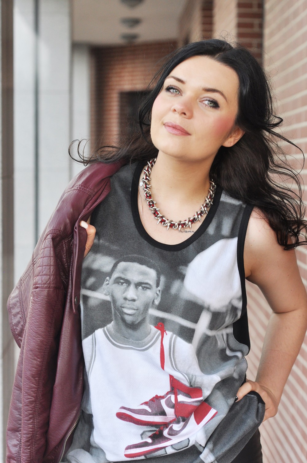 I tak oto mój ukochany Małżonek został niezbicie przekonany o tym, że koszykówka w mym istnieniu to coś więcej niż dwutakt na lekcji wf. Jako nastolatka oglądałam wszelkiej maści programy tv (także ten z tytułu posta), skróty meczów i ekscytowałam się ligą. Wyłącznie amerykańską, bo wiadomo – jest i była najlepsza. Ku rozpaczy rodzicielki i radości rodziciela zapragnęłam także posiadać strój koszykarski. Ale wówczas nie udało mi się przekonać tej pierwszej, że to najbardziej zdatne odzienie dla małych dziewczątek. I z tego tytułu spełniam swoje potrzeby dzisiaj, podkradam tanki od Męża. A on, jeśli noszę w takim wydaniu, nie ma nawet nic przeciwko.