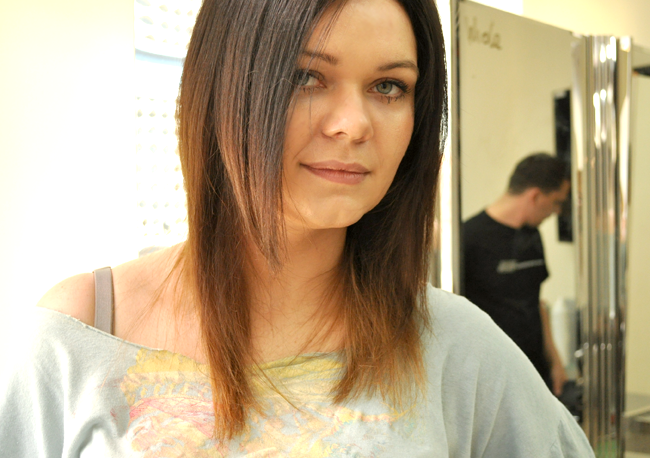 były użyte dwie farby, łączone z moim kolorem, by uzyskać efekt naturalnego przejcia 🙂