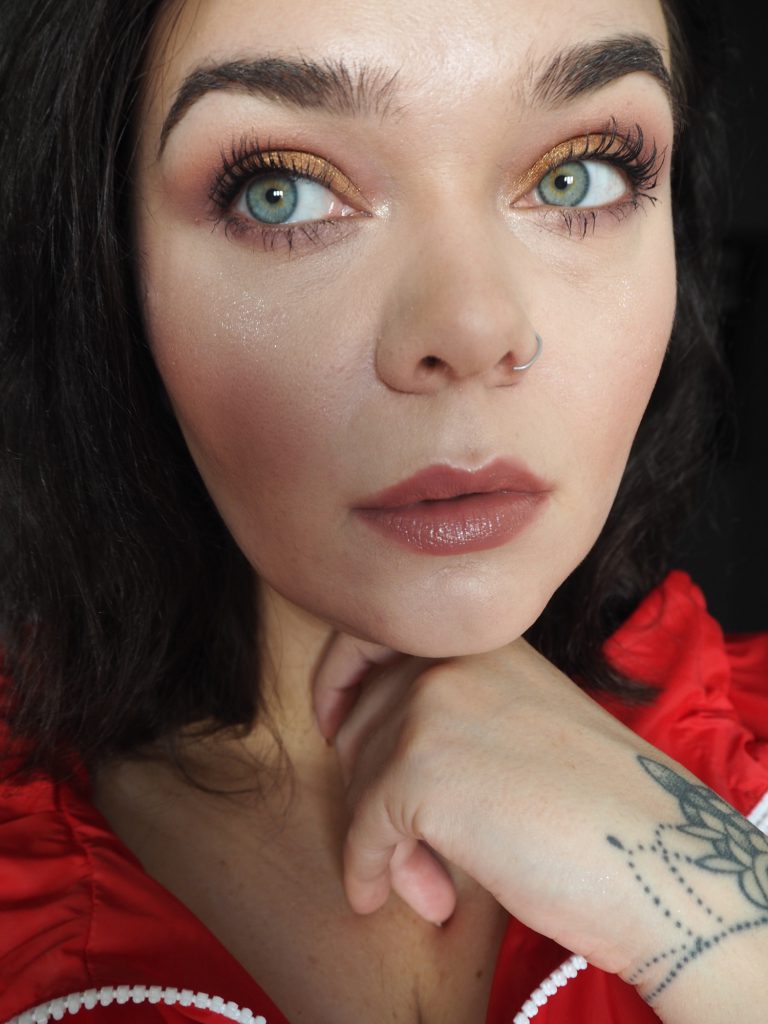 Praca z cieniami, to czysta przyjemność. Choć w dotyku wydają się być dość suche (ale znacznie mniej pylące się i kremowe niż. np. ABH), to podczas pracy uzyskujemy niesamowicie mocno nasycone barwy, które rozcierają się jak marzenie. Cienie możemy dokładać, budować, bawić się nimi do woli.