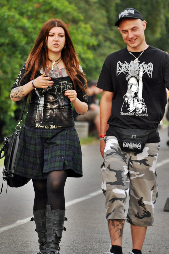 IV. STYLÓWY: Na to nie można było narzekać. Choć mawia się, że każdy festiwal to teraz rewia mody i trend „moda festiwalowa” od kilku lat serwowanych jest nam w kolorowych pismach, to powiem Wam, że na Metalfeście nie ma ściemy. I tłum dzieli się na dwie grupy – tych odzianych w ciemne spodnie i koszulkę z kapelą, a także kombinatorów, którzy pragną się z tłumu wyróżniać. Mianownik wspólny – każdy, z obu grup, na bank zastanawia się co ma na sobie. I nie dajcie się zwieść! Bo byle jaka koszulka z kapelą, to naprawdę przemyślana decyzja….