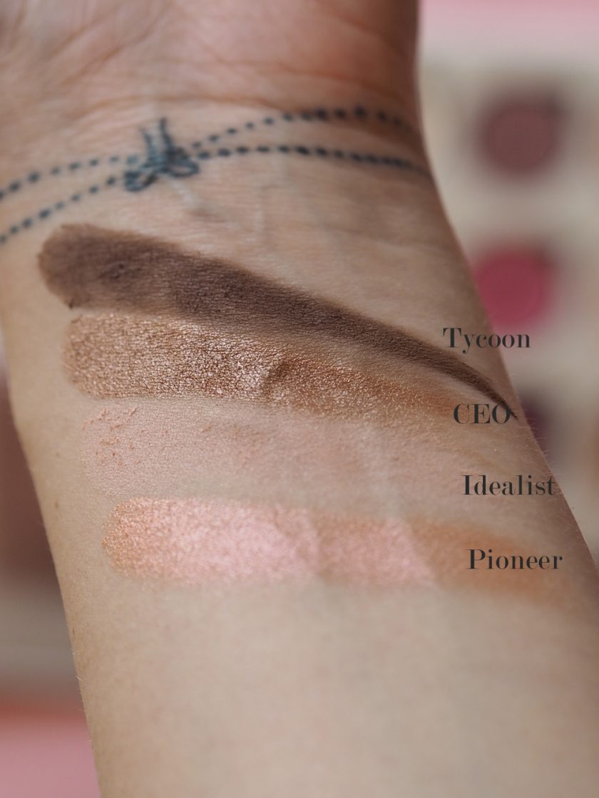 - Tycoon: czekoladowy, matowy cień. Do kącików oka, na dolną powiekę. Jednak w połączeniu z ciemniejszymi, błyszczącymi cieniami z paletki może być nieco za jasny do klasycznego smoky czy halo eye.