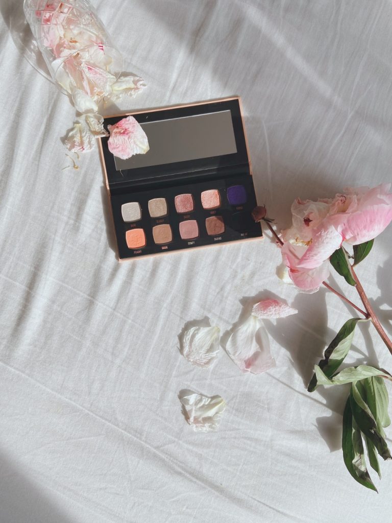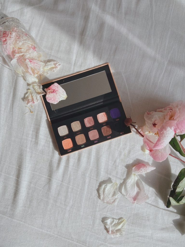 Paletka zawiera dziesięć kolorów cieni o dwóch wykończeniach – błyszczącym i matowym. Jest stworzona w Polsce, nie zawiera odzwierzęcych składników (vegan!), a łącznie znajdziecie w niej 10g produktów. Kartonowe, solidne i lekkie opakowanie jest ładnie zaprojektowane – minimalistyczny element graficzny (zarys miasta) ładnie komponuje się z nowoczesnym logo.