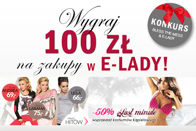 A na deser zapraszamy na obiecaną w niedzielę dogrywkę konkursu z E-Lady. Tym razem mamy dla Was bon na 100 zł do wydania na dowolne produkty z E-Lady. Konkurs odbywa się na naszym Facebooku w aplikacji (pierwszy raz robiłyśmy, be tolerant!), wystarczy kliknąć w grafikę, by wziąć udział: