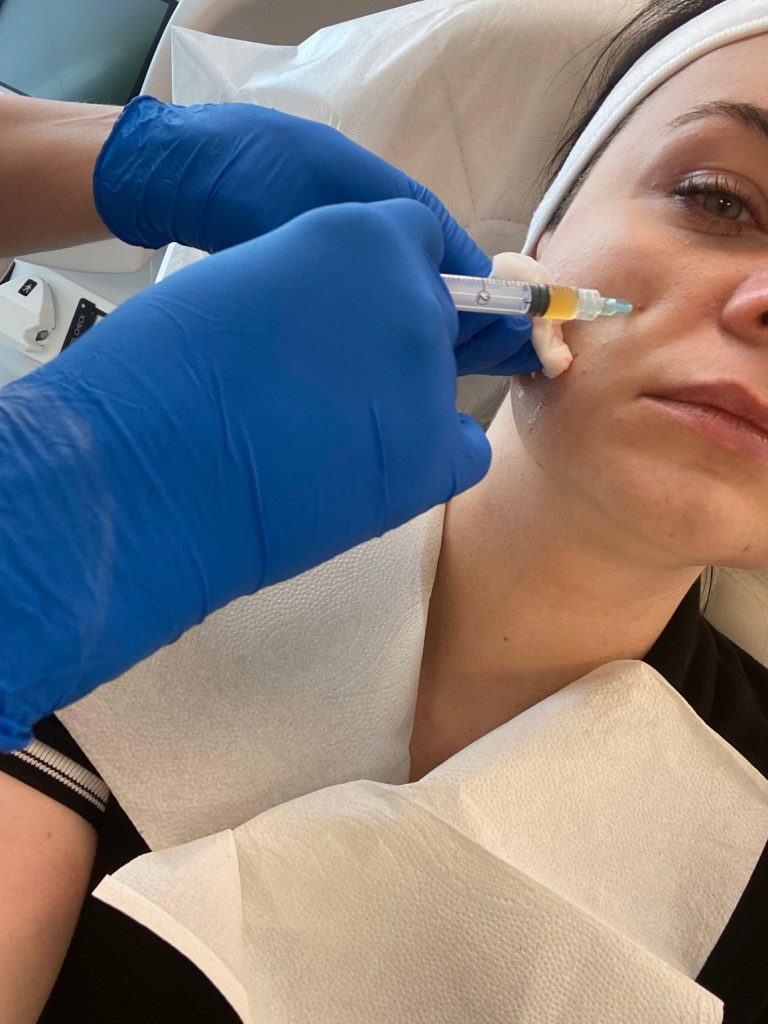 Więc kiedy w Este Klinika planowaliśmy serię zabiegów, koniecznie chciałam dołożyć kilka spotkań z osoczem (jest to nasza własna, odwirowana krew), by wzmocnić efekt. W moim przypadku działaliśmy jednak delikatniej, robiąc iniekcję punktowo, niezbyt gęsto. Ze względu na jednoczesne zabiegi laserem i możliwości regeneracyjne skóry. Najbardziej spektakularne efekty przynosi wtłaczanie osocza przy pomocy strzykawki, bardzo gęsto. Można również podawać je za pomocą dermapenu (popularne urządzenie do mikronakłuwania buzi).